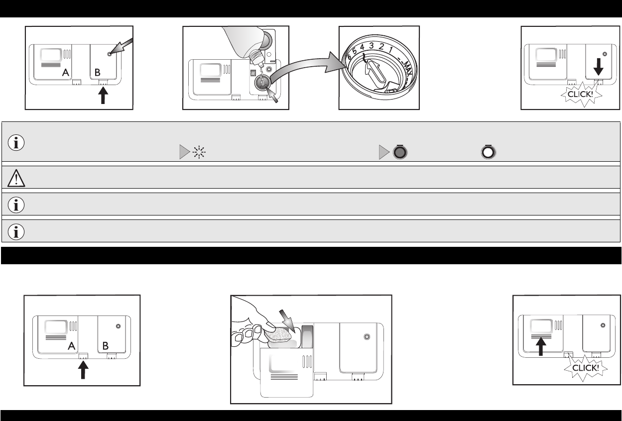 Adding detergent - Use only detergent specifically for dishwashers in accordance with the supplier’s recommendations