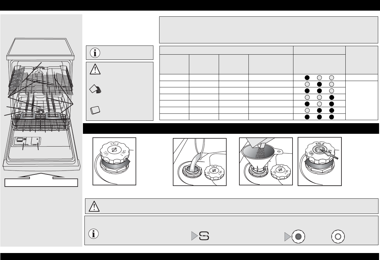 (le programme de « Prélavage » seul ne suffit pas). La solution saline ou les grains de